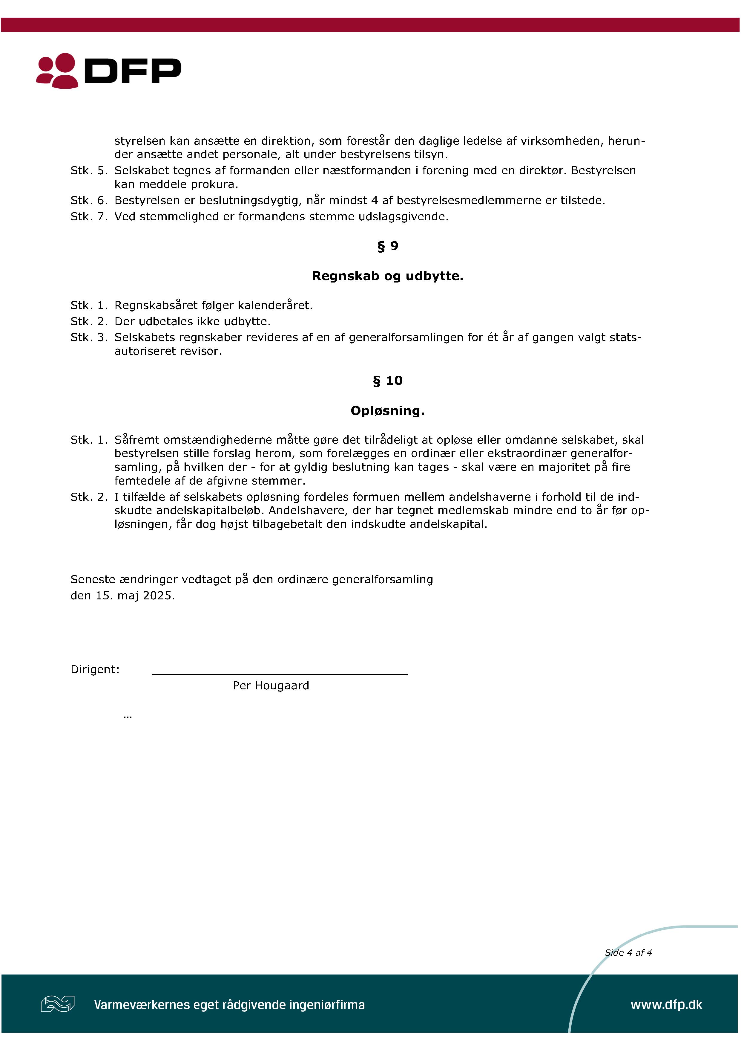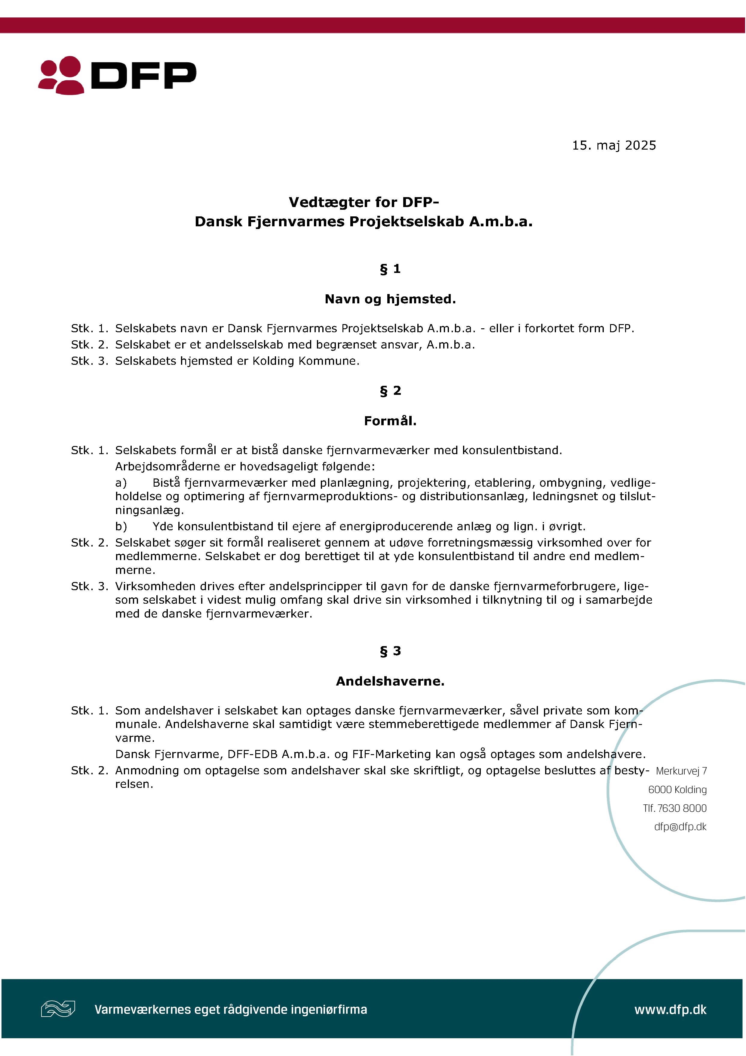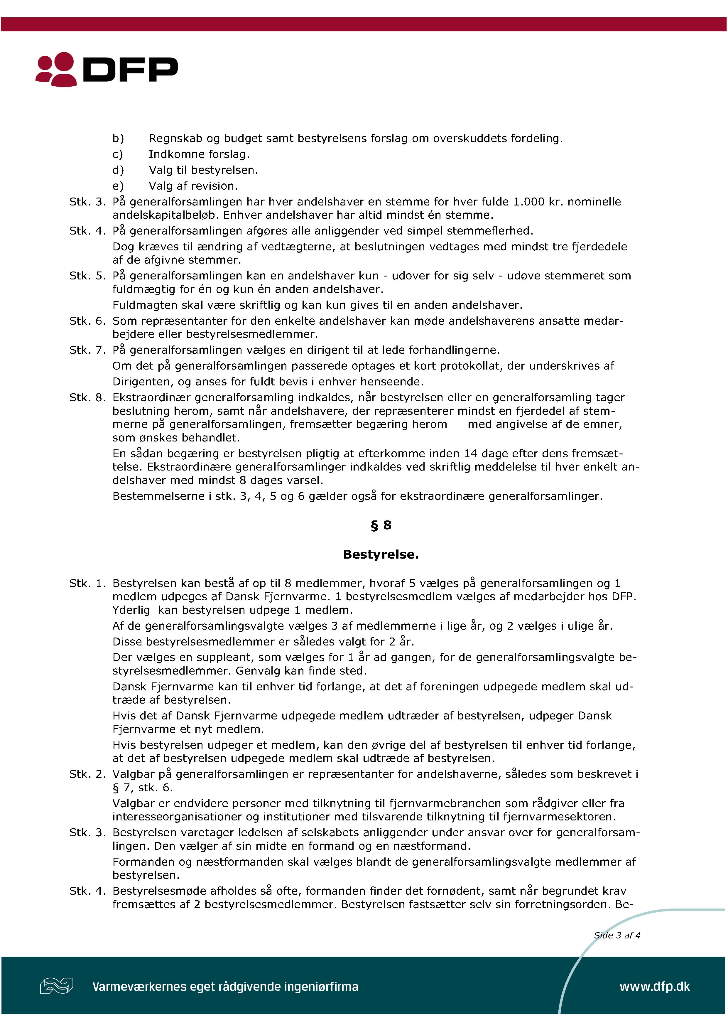DFP's vedtægter beskriver kort sagt, hvad DFP er for en virksomhed. Hvad er formålet med DFP? Hvad skal generalforsamlingen omfatte? Hvem kan side i DFP's bestyrelse?